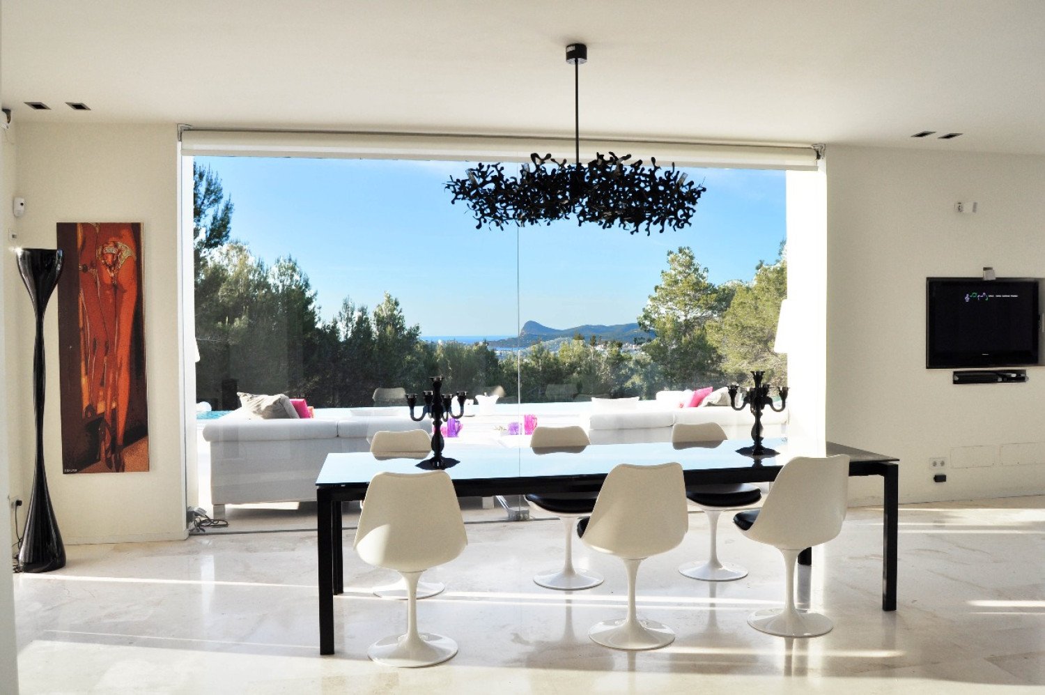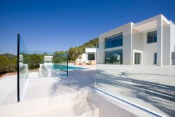 Villa exclusiva de lujo, de estilo minimalista, construida con materiales de primera calidad. Es situada en San Agustín a 10 minutos en coche de las playas de Cala Comta, Cala Bassa, Cala Moli, Es Cubells, a sólo 2 minutos en coche de Sant José y a 20 minutos de la ciudad de Ibiza. Esta magnífica villa ha sido edificada sobre un terreno de 22.500 m2 y está totalmente vallada y con porton eléctrico y es totalmente privada y sin vecinos. La villa entera tiene sistema de alarma y vigilancia láser. El jardín ofrece árboles frutales, jardín de cactus y un jardín zen mediterráneo.La villa está construida en 2 niveles y cuenta con 8 habitaciones dobles completamente equipadas con aire acondicionado, calefacción, wi-fi, televisión de plasma vía satélite, DVD, caja fuerte; cada habitación tiene su propio cuarto de baño y su vestidor. Hay 2 salones, 2 cocinas totalmente equipadas con los mejores aparatos, SPA con gimnasio, sauna, zona de masajes. En el exterior, hay dos piscinas y diferente areas chill out, pequeñas cascadas, hamacas y un gran porche con mesa para 16 personas. Hay un excelente sistema de sonido en el exterior y en el interior; las piscinas y las cascadas están iluminados con fibra óptica, con hasta 8 colores que van cambiando simultaneamente. La casa entera se ilumina de manera estratégica. Los muebles de diseño, el glamour y los detalles perfectos hacen de esta propiedad un lugar muy especial.